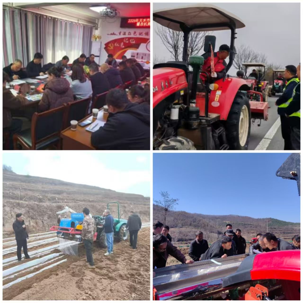 市农业农村部门以“实干担当促春耕 守牢粮仓保丰收”为主题,组织技术指导组深入清水县秦亭镇汉麻机械化种植示范点,对村股份经济合作社负责人、农机操作手、驾驶员50多人进行培训,从春耕期间最为实用的翻转犁、旋耕机、播种机、覆膜机、辅助驾驶系统、植保机械维修、保养、检修等环节开展现场教学,技术指导组与合作社操作人员详细检查每台机械技术状态,并面对面传授农机维修保养方法,将课堂搬进田间、技术送到地头。麦积区召开2026年农机安全生产暨农业机械购置补贴工作专题会议,从强化源头管理,把好“准入关”、强化排查整治,守好“关键点”、强化执法监管,织密“防护网”、强化应急准备,提升“处置力”四个方面抓实抓细农机安全、落实农机购置与应用补贴政策;组织农机技术人员下沉一线,对春耕生产期间重点机具进行全面“体检”,应急供应渠道畅通无阻,确保农机“小病”不出田、“大病”不误修,为春耕生产备足了“安全底气”,举办培训4期,为300余名农机手“充电赋能”。武山县农业农村局精准落实农机购置补贴政策、保障供给、机具检修、技术指导、安全监管等五项措施,切实提升农机作业效能,全力护航全县春耕生产有序开展。甘谷县紧扣顶凌覆膜、整地播种等重点农事,推进春耕技术服务、隐患排查、宣传培训等任务清单,实行分片包干、责任到人;组建农机技术服务专班,推行定点检修+流动服务双轨模式,提供全链条、点对点农机技术指导,优化农机调配与作业调度,提升机械化作业效率;累计完成农机入户检验近200台(辆),保障机具以最佳状态投入春耕。