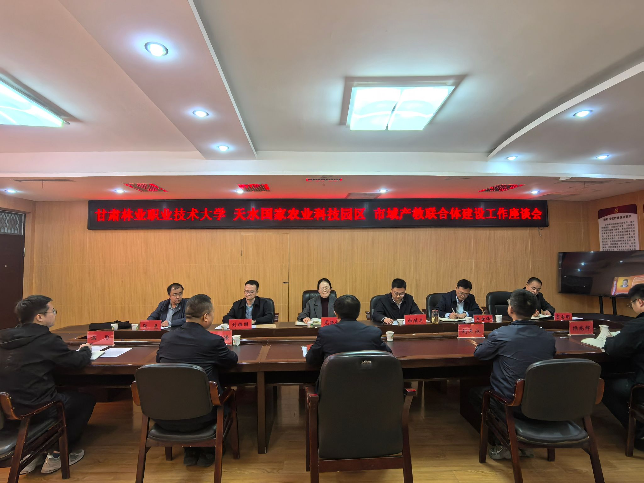 座谈会上,双方就联合体的组织架构、运行机制、重点任务等核心内容开展务实磋商。天水国家农业科技园区作为区域农业科技创新的高地,聚力集聚创新资源,已培育高新技术企业4家、省级“专精特新”企业2家,形成了层次分明的科技型企业集群,为深化产教融合奠定了坚实的产业基础。甘肃林业职业大学在林业技术、园林工程、生态保护等领域办学特色鲜明、人才优势突出。双方共建产教联合体,是推动教育链、人才链与产业链、创新链深度融合的有力举措。甘肃林业职业技术大学将充分发挥林果、生态等领域的人才与技术优势,以联合体建设为契机,推动教学资源与产业需求精准对接;园区将全力搭建产学研用协同平台,在人才培养、技术攻关、成果转化等方面与学校开展实质性合作,推动联合体尽快落地见效。