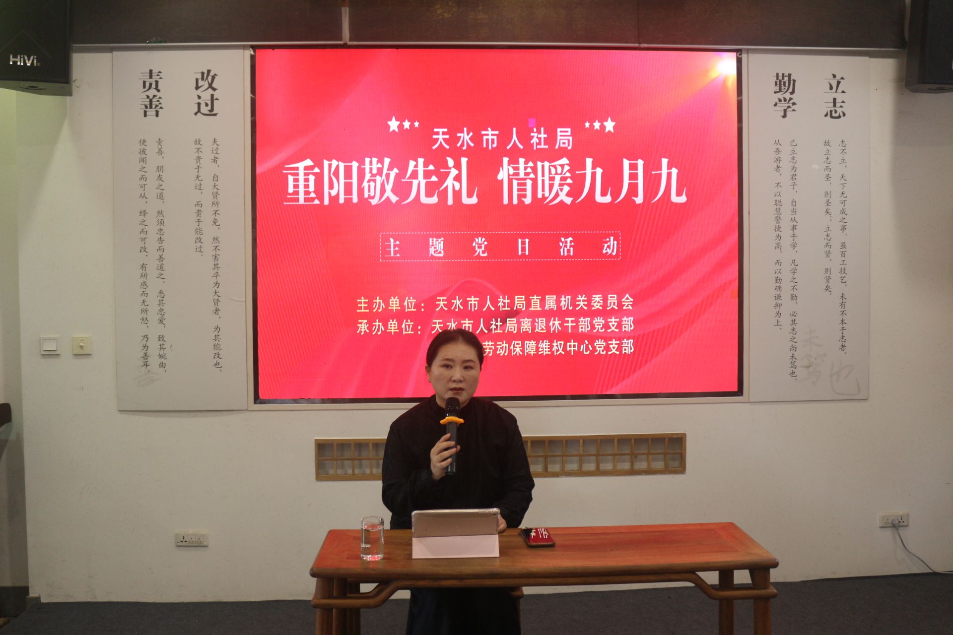 金秋送爽,丹桂飘香。在中华民族传统节日重阳节即将来临之际,为弘扬尊老敬老爱老助老的优良传统,传递党组织对离退休党员的深切关怀,10月28日上午,天水市人社局在国馥茗文化创意馆精心组织开展“重阳敬先礼·情暖九月九”主题党日活动。局领导班子成员、离退休党员代表、各支部党员代表,以及养生专家、民俗专家、太极拳师等共50余人齐聚一堂,共赴一场温情满溢的重阳之约。