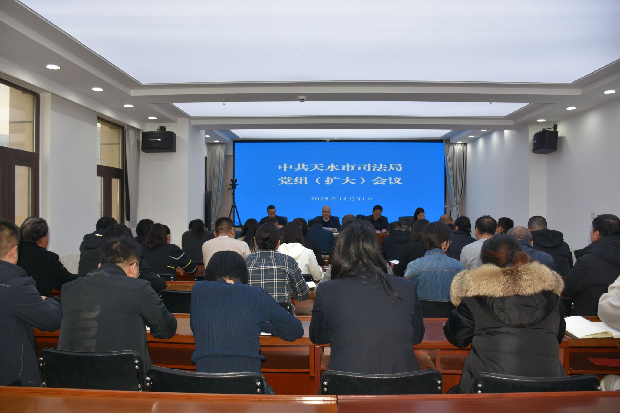 会议学习了中共中央政治局会议精神、习近平总书记在中共中央政治局民主生活会议上的重要讲话精神,会议传达学习了市委八届十二次全体会议暨市委经济工作会议、市委全面依法治市工作会议、《天水市安全生产委员会关于加强岁末年初安全防范工作的通知》《市委办、市政府办关于做好2026年元旦春节期间有关工作的通知》、全省司法行政系统2026年元旦春节期间安全稳定工作调度会议精神。
