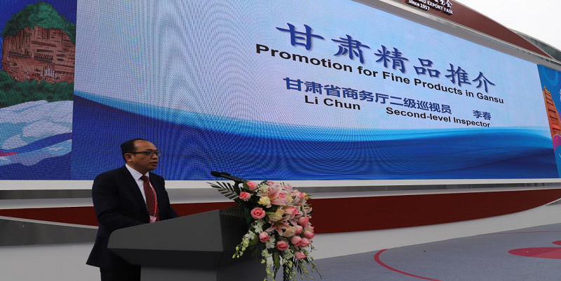4月15日,第133届广交会在广州琶洲展馆盛大开幕,为展示甘肃独特优势、扩大特色产品宣传,吸引全球采购商关注,助推甘肃外贸高质量发展,经过前期积极对接、精心准备,甘肃交易团于开幕当天在广交会展馆“黄金地段”的中央平台,成功举办以“如意甘肃走向世界”为主题的“甘肃精品推介会”,甘肃省商务厅二级巡视员李春出席活动并作了专题推介。