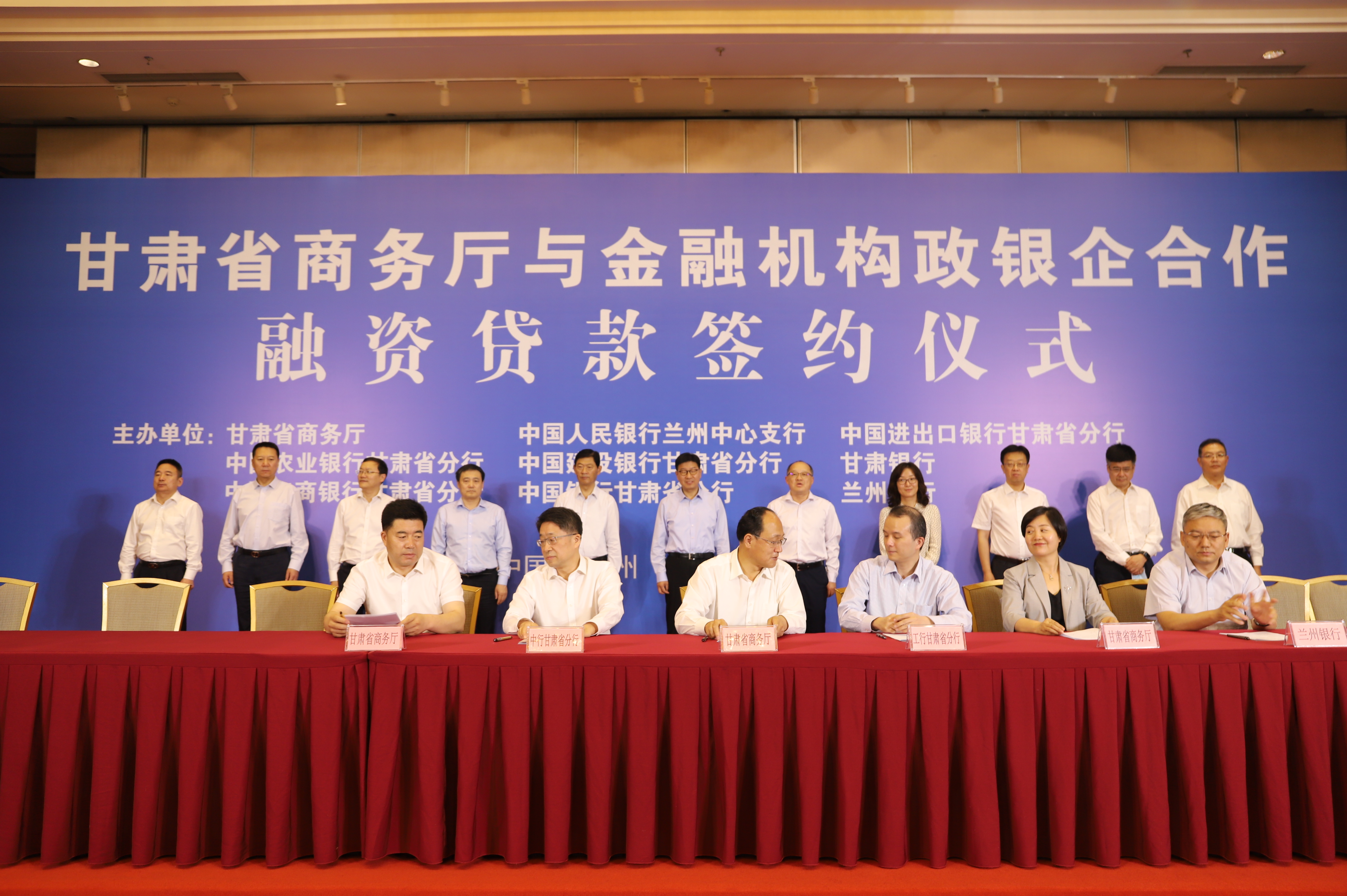 为深入贯彻党中央、国务院决策部署及全国稳经济电视电话会议精神,全面落实省委省政府稳住经济一揽子政策措施部署要求,充分发挥政银企合作平台作用,助力金融机构加大对商贸流通企业的金融支持。6月17日,省商务厅牵头与7家金融机构、部分商贸流通企业举办政银企合作融资贷款签约活动。省委常委,副省长张锦刚出席见证签约仪式,省政府副秘书长徐延文参加签约仪式。省商务厅厅长张应华致辞,农业银行甘肃省分行行长姜海洋、工商银行甘肃省分行党委书记王晓东、中国银行甘肃省分行行长王峰、甘肃银行董事长刘青分别作了发言,人民银行兰州中心支行、进出口银行甘肃省分行、建设银行甘肃省分行、兰州银行有关负责同志参加了签约仪式。