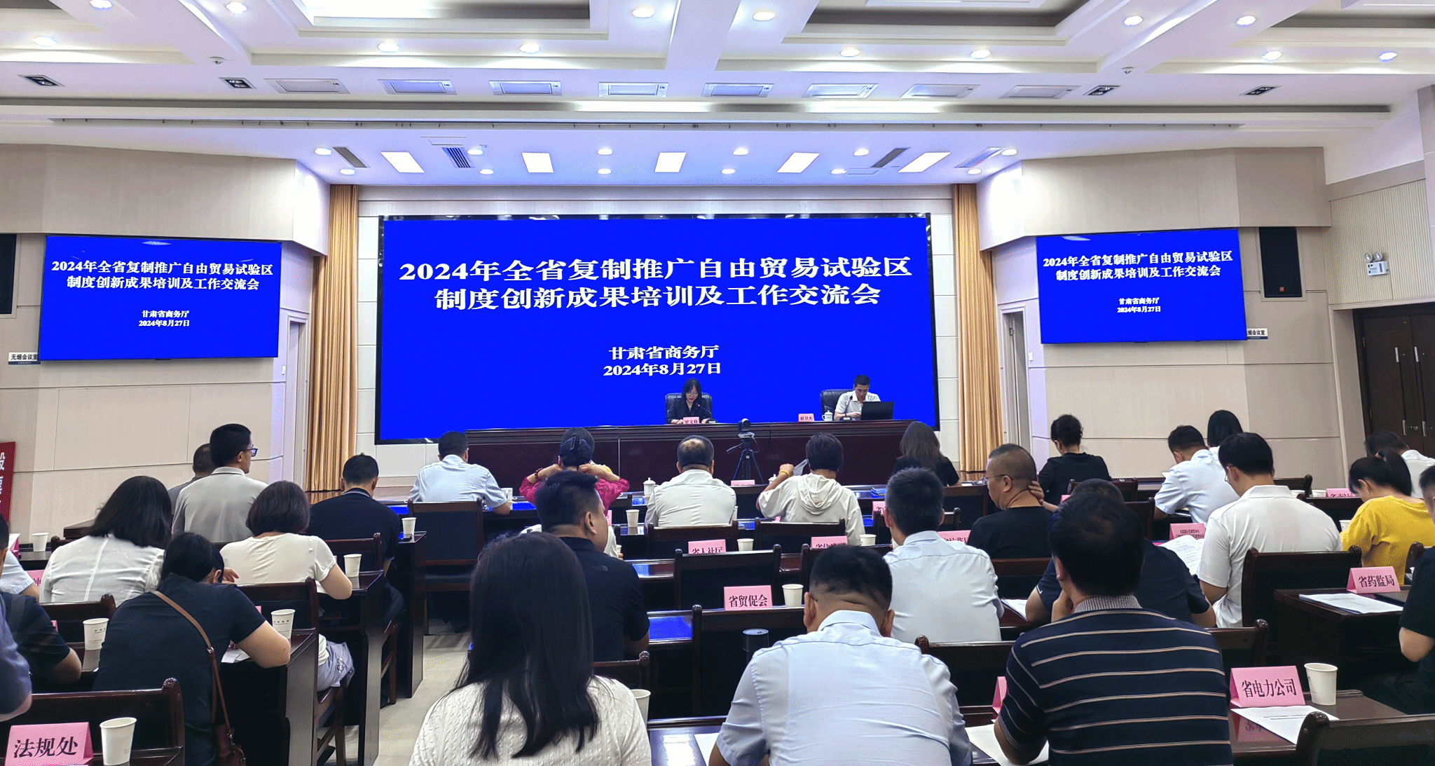 本次培训及工作交流会以“现场+视频”形式召开。会上,省商务厅通报了2024年上半年全省复制推广自由贸易试验区制度创新成果工作进展情况;省发展改革委、省市场监管局、省税务局、兰州海关,兰州、金昌、酒泉市商务局代表市政府就本领域、本地区制度创新和经验探索进行了交流发言。