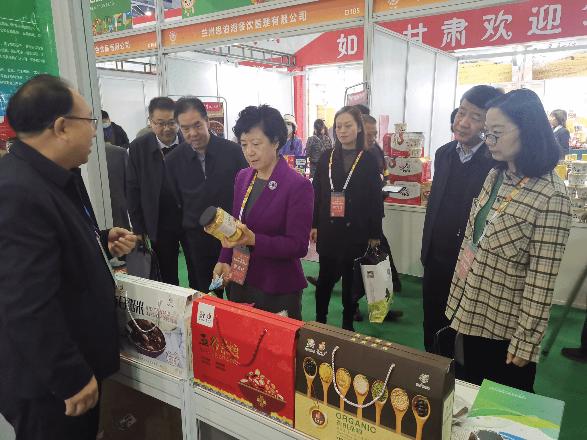 省商务厅和省农业农村厅重点组织了牛肉面预包装食品、特色小吃、预制菜等龙头食品企业和苹果、百合、木耳、枸杞、花椒、牛羊肉、小杂粮等“甘味”农产品企业参展参会,何伟副主席实地察看了甘肃展位,对省商务厅和省农业农村厅此次组展工作给予充分肯定。她强调,要借助“绿博会”平台,大力宣传推介我省特色餐饮食品和优质农产品,鼓励企业积极寻找商机,主动“走出去”开拓省外市场,建立多元化销售渠道。