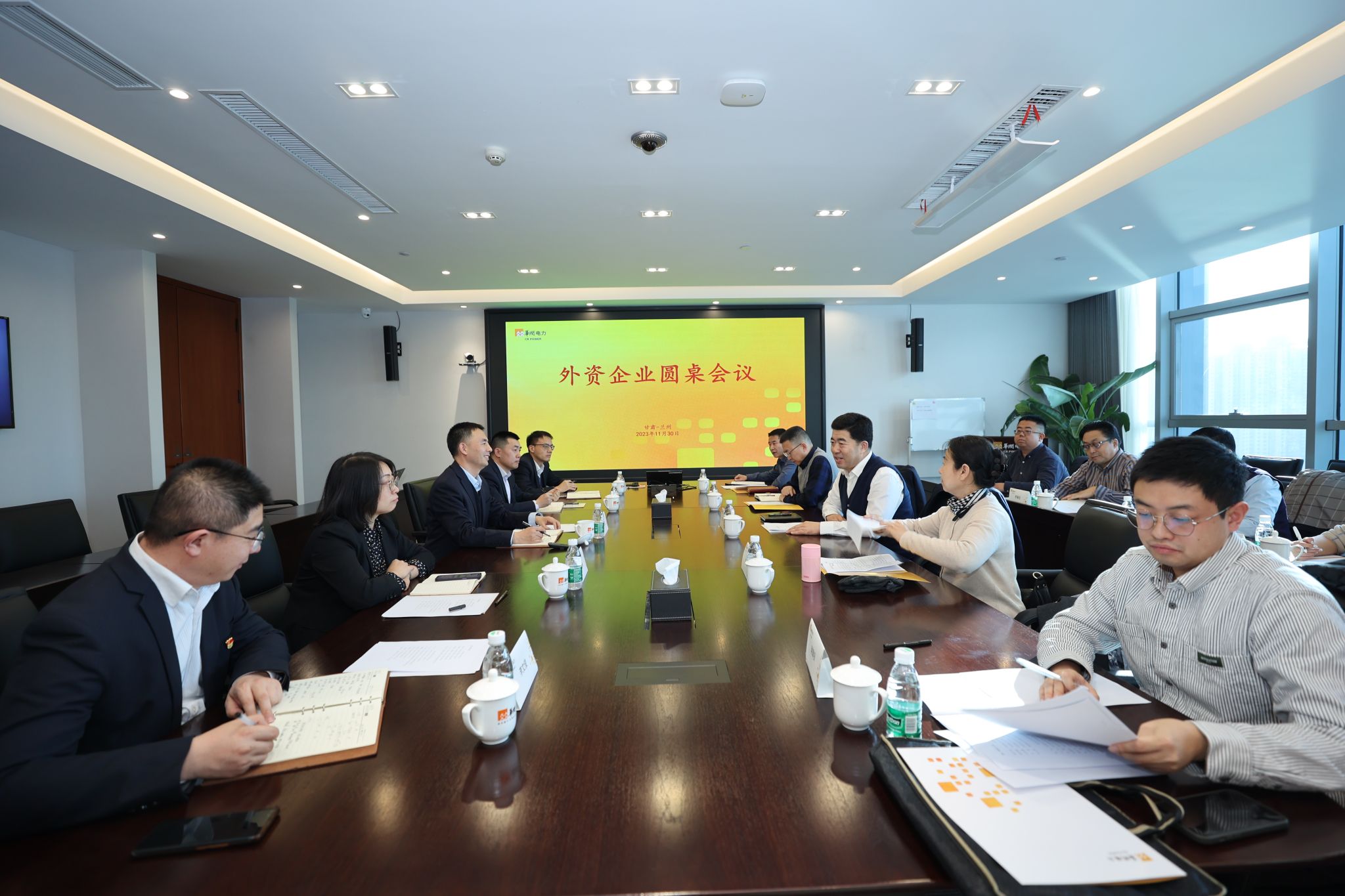 本网讯 11月30日,甘肃省重点外资项目工作专班在华润新能源(甘肃)有限公司召开外资企业圆桌会议,现场听取企业意见建议。省商务厅党组成员、副厅长邹军主持会议,省发展改革委、省自然资源厅、省生态环境厅等专班成员单位和兰州市商务局负责同志,华润新能源(甘肃)有限公司总经理杨召伟等领导班子成员参会。