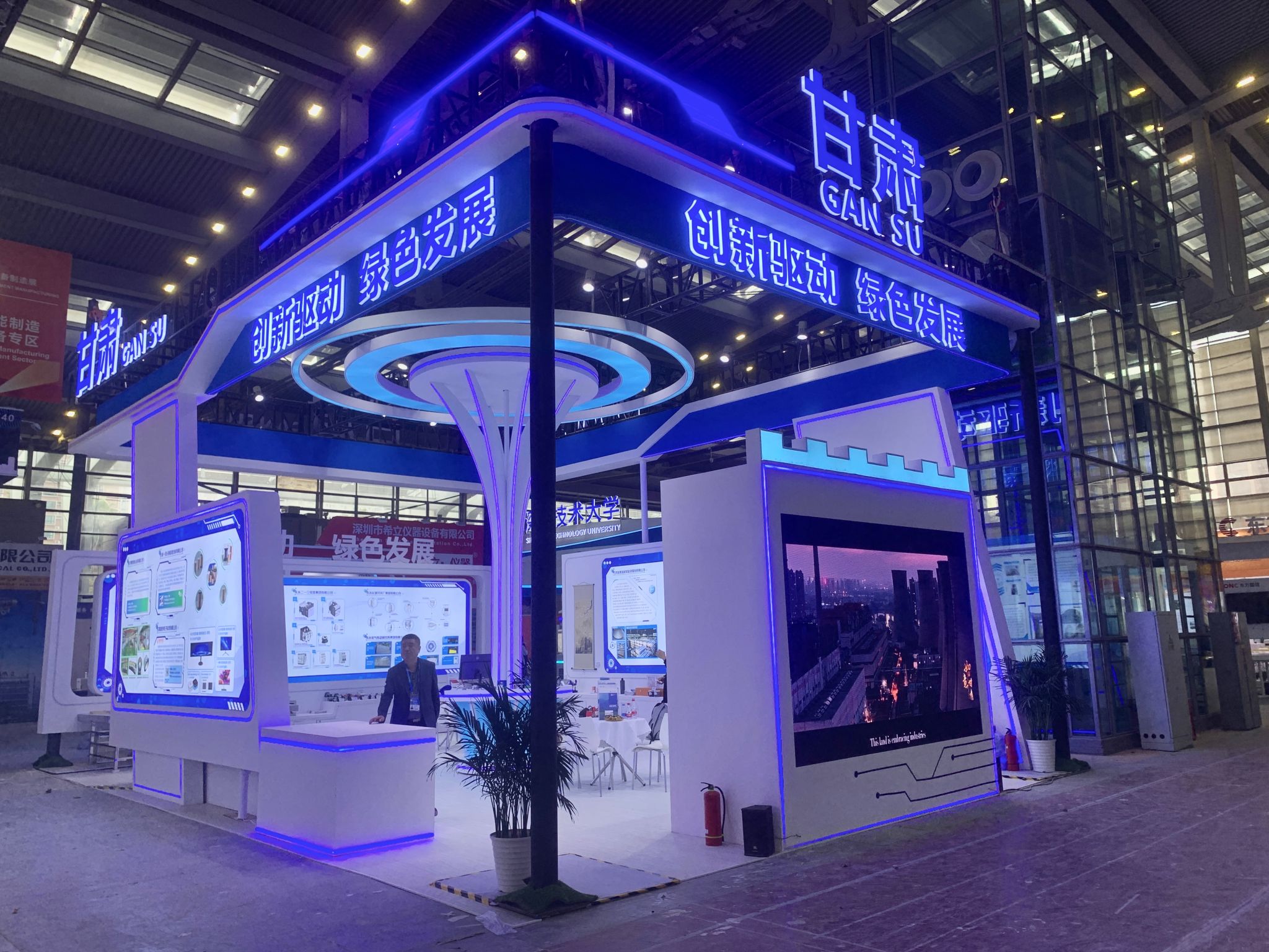 本届高交会,甘肃省第一次在高端装备制造专业展区,采用统一组展、整体特装形式布展,展区面积96平方米,以“创新驱动、绿色发展”为主题,集中展示甘肃省高端装备制造产业的新技术、新产品和发展合作机会及优势。遴选组织了兰石集团、金川集团、甘肃电气装备集团、甘肃海林中科等19家装备制造龙头企业参展,重点展示合金储氢及燃料电池系统、核电用高温合金高精带材、三合一压力过滤机等50多种高端装备制造产品。