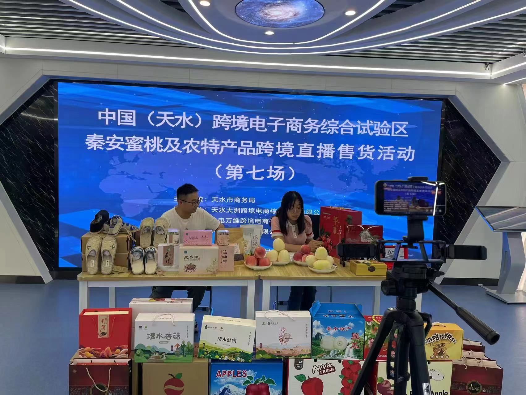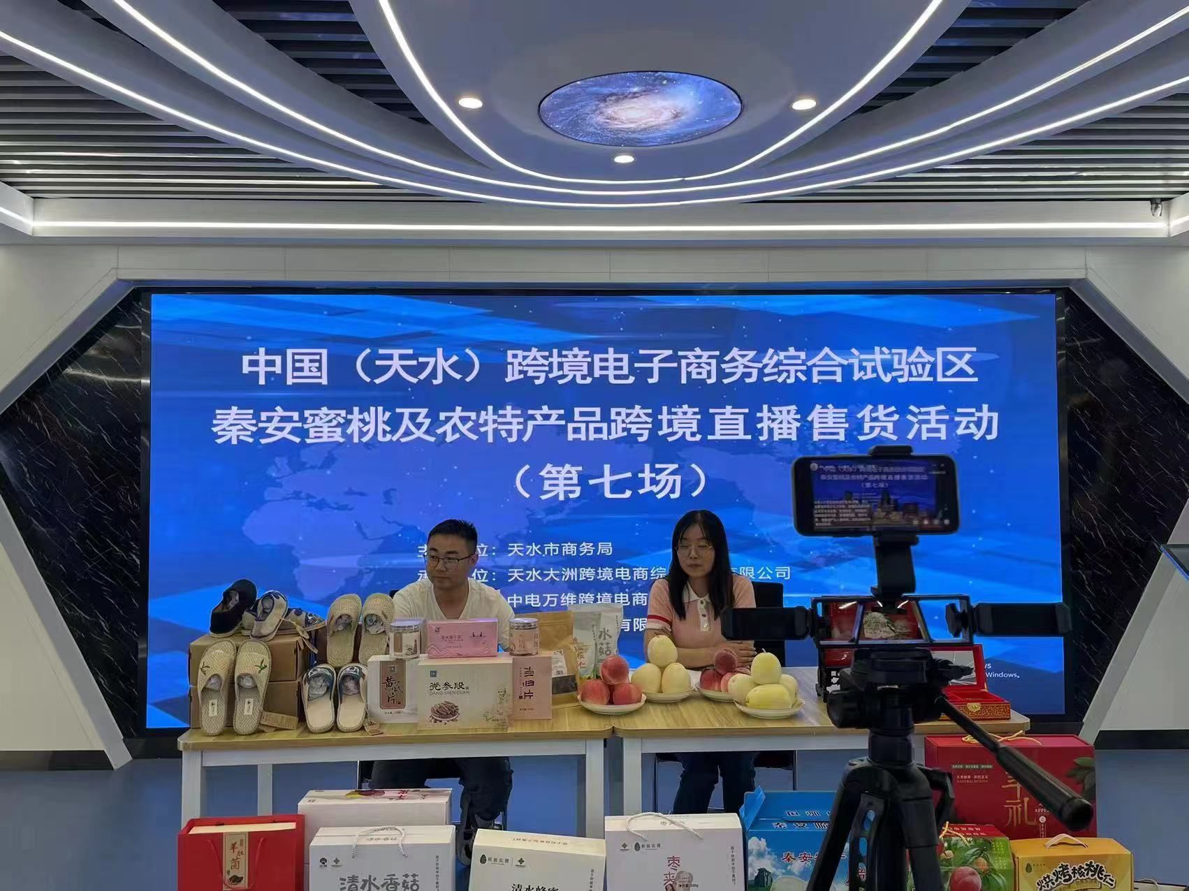 7月13日,中国(天水)跨境电子商务综合试验区举行秦安蜜桃及农特产品专场跨境直播售货活动。此次活动由天水市商务局主办,天水大洲跨境电商综合服务有限公司、中电万维跨境电商平台运营中心承办,旨在扩大我市名优农特产品知名度,帮助农产品企业开拓外贸销售渠道,争取国外订单,提升产品价值,助力我市农特产品走出国门、走向国际。