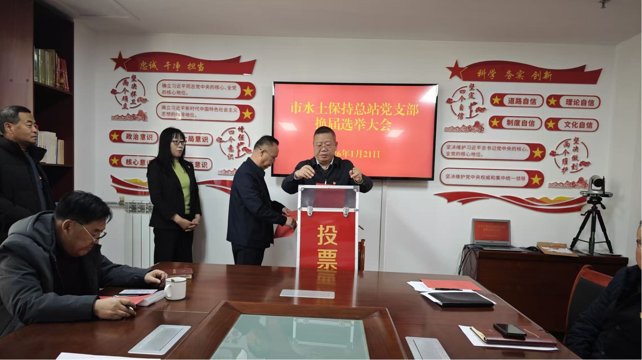 为进一步加强基层党组织建设,充分发挥党支部的战斗堡垒作用和党员先锋模范作用,推动全市水土保持事业高质量发展,根据《中国共产党章程》《中国共产党基层组织选举工作条例》相关规定和上级党组织的统一部署,1月21日,天水市水土保持总站党支部隆重召开全体党员大会,顺利完成了支部委员会换届选举工作。大会在庄严的国歌声中拉开帷幕。