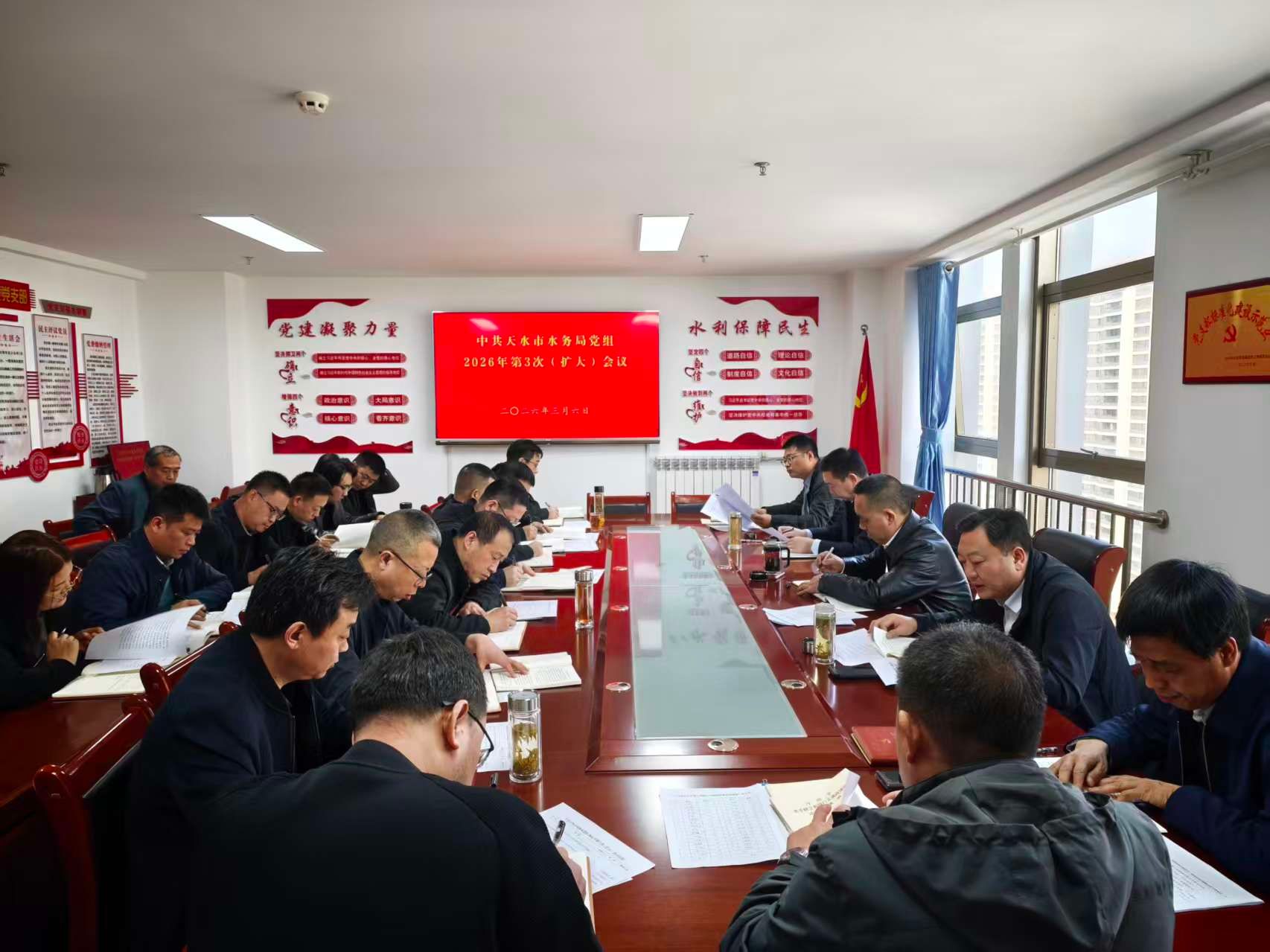 会议传达学习了习近平总书记关于树立和践行正确政绩观的重要论述、市委党的建设工作领导小组2026年第一次会议精神、《天水市开展树立和践行正确政绩观教育工作方案》,研究审议《天水市水务局开展树立和践行正确政绩观教育工作方案》,并对全局学习教育作出系统安排。