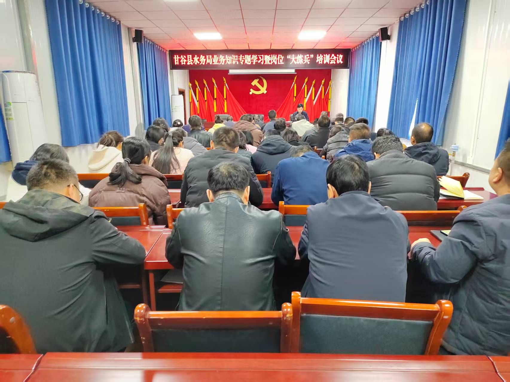为深入贯彻全市作风建设年活动动员部署会议精神,切实夯实水利干部履职根基,助力水务事业高质量发展。从2月24日开始,县水务局举办了为期一周的业务知识专题学习暨岗位“大练兵”活动,局党组成员、科级领导干部、各供水站负责人及机关全体干部职工共60余人参加集体学习。