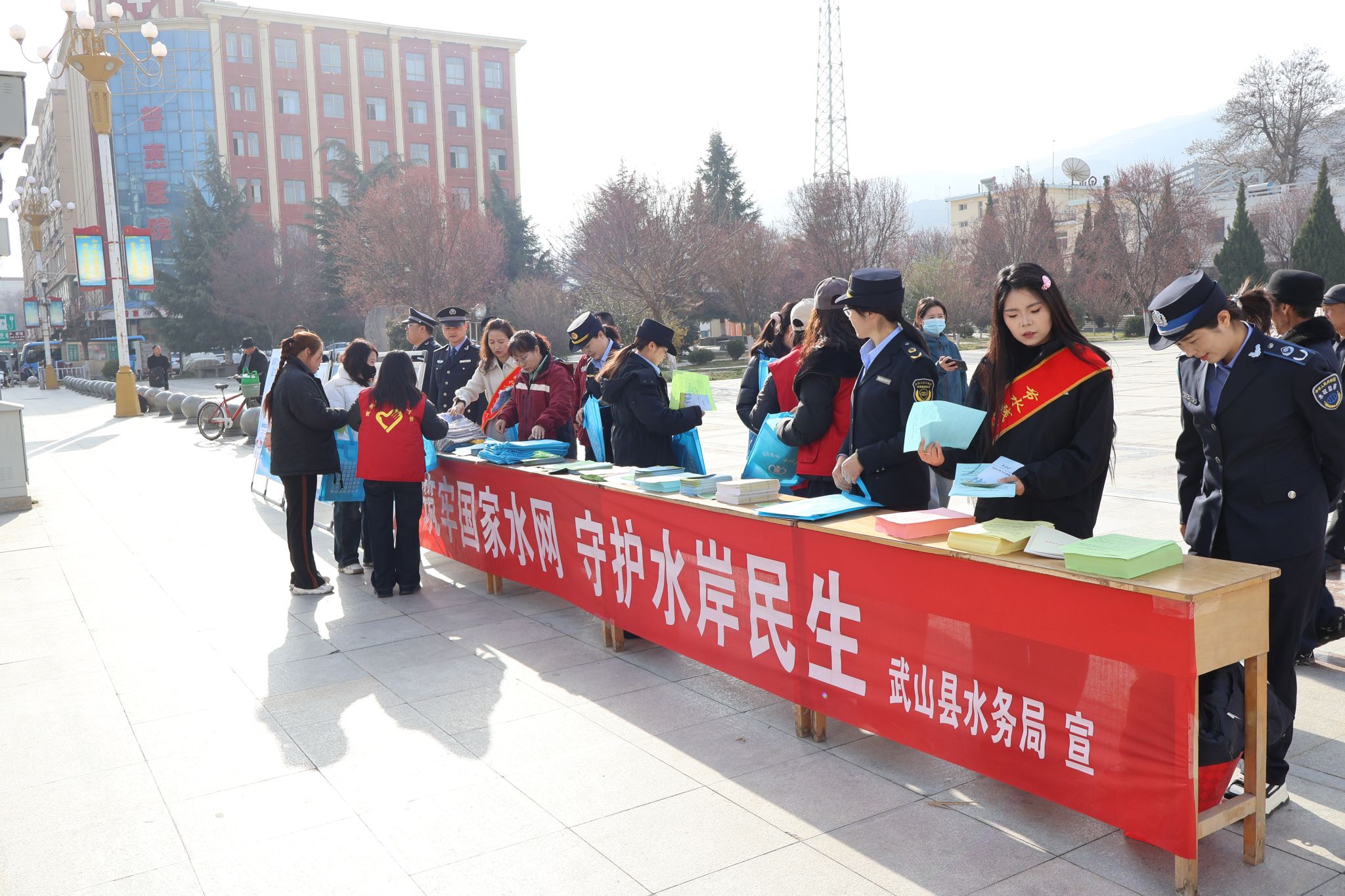 城区集中宣传:在武山火车站广场设立主会场,通过悬挂主题横幅、摆放展板、发放《中华人民共和国水法》《甘肃省河道管理条例》及致家长的一封信等宣传资料,向群众讲解国家水网建设蓝图、本地水网工程进展、家庭节水技巧与水情科普知识,现场解答饮水安全、河湖管护、防汛抗旱等群众关切。