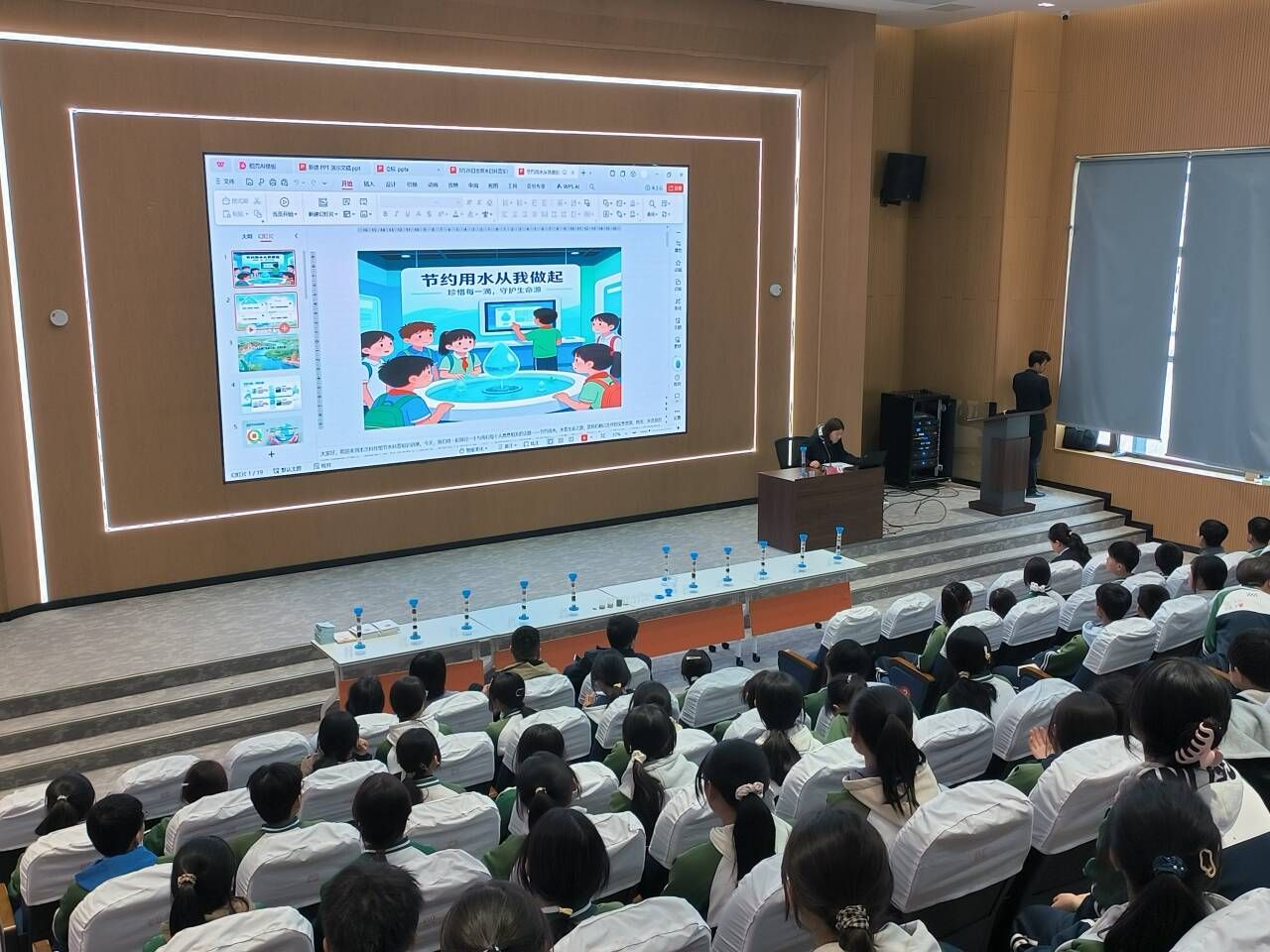 随后,在科技馆三楼多功能报告厅县水务局专业技术人员开展了“普及节水知识 守护生命水源”专题科普大讲堂。通过图片、动画及典型案例,系统讲解了我国水资源现状、水生态保护要点、水安全基础知识及日常节水实用方法。结合县域水情实际与河湖治理实例展开科普解读,并设置现场提问答疑环节,充分调动了同学们的参与积极性。在互动中,同学们深刻认识到,每一滴水的守护都与国家水安全息息相关,纷纷表示要以实际行动践行“强国复兴有我”的青春誓言,进一步激发了他们爱水护水的自觉意识与行动热情。