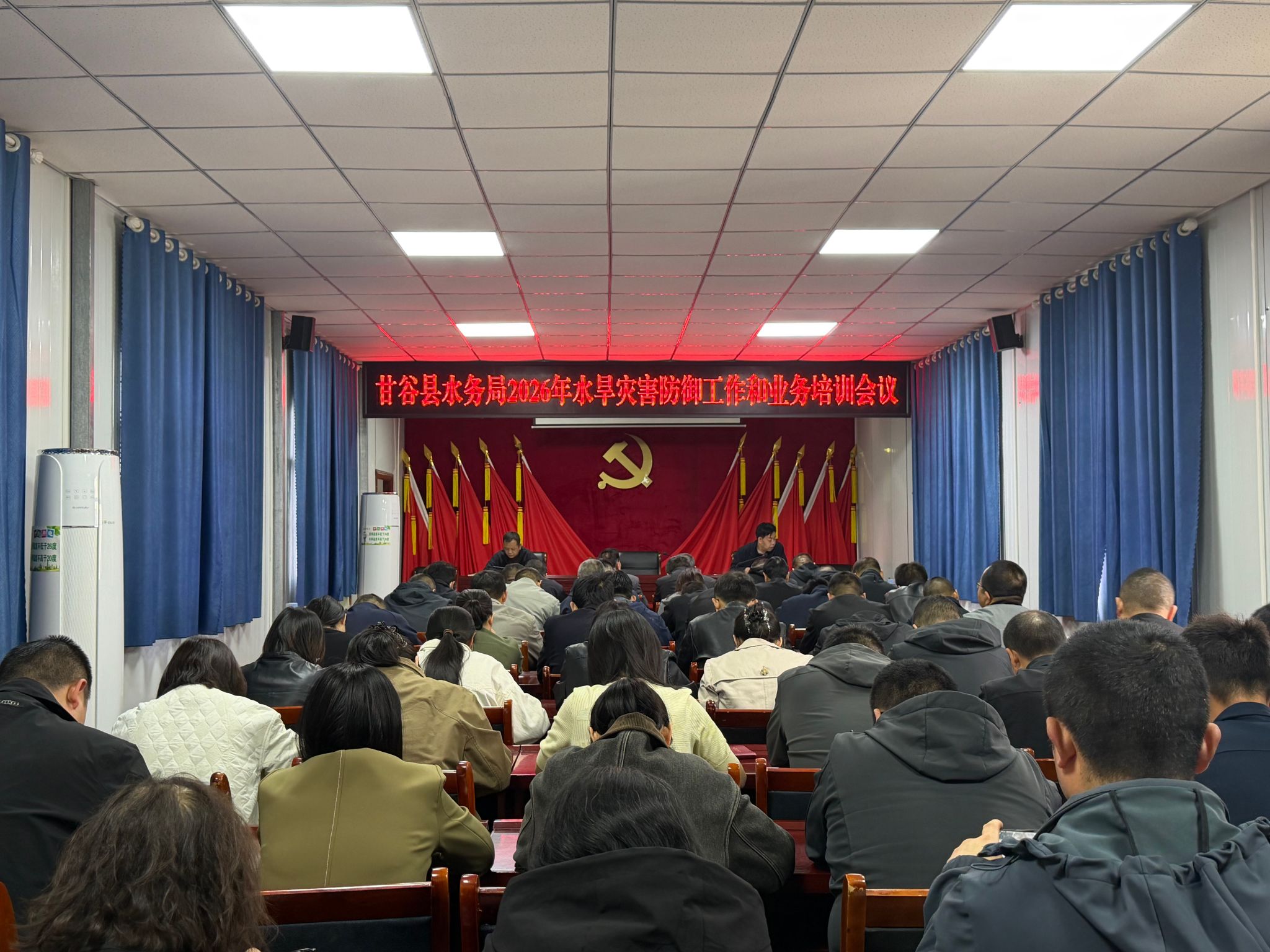 为全面落实防汛抗旱工作部署,提升水旱灾害防御能力和业务水平,4月13日,甘谷县水务局组织召开2026年水旱灾害防御工作暨业务培训会议,局党组成员、科级领导干部、各供水站站长、机关全体干部职工共计60余人参加会议。