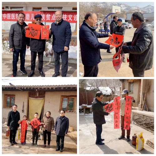 汇集了内、外、妇、儿各科专家的医疗团队穿上白大褂,拿起听诊器,为前来问诊的村民们耐心诊断,确保老百姓健健康康过新年。义诊过程中还根据实际情况向身体抱恙的病人发放了参芪抑糖通络胶囊、麻黄平喘胶囊等院内制剂。另一边,中医院部分书法爱好者聚在一起为村民书写对联、福字,火红的对联衬得大家的心更暖更近。