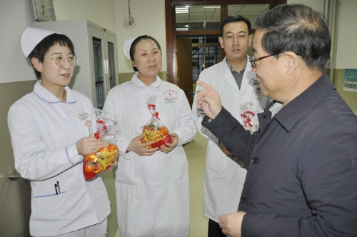 2月4日(除夕)傍晚,市中医院院长王志刚带领班子成员、职能科室负责人和医院总值班人员走访了全院各科室,看望慰问春节期间值班人员,向他们致以节日的问候和新春的美好祝愿。