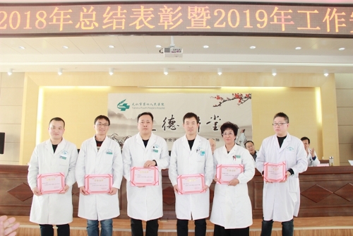 副院长白云峰宣读了《医院关于表彰2018年度先进集体和先进个人的决定》,副院长徐健宣读了《医院关于表彰2018年度优秀科研项目、新技术新业务、学术专著及优秀学术论文的决定》,院领导为获奖的集体和个人颁发了荣誉证书。