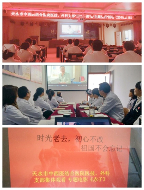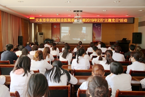 2月15日下午,天水市中西医结合医院(市二院)各党支部开展“主题党日”活动,组织党员干部观看了由中共天水市秦州区委组织部和天水广播电视台联合拍摄的党员教育片《赤子》。