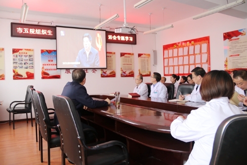 3月1日下午,天水市第五人民医院党支部召开了2018年度基层党组织组织生活会和民主评议党员工作培训会。院党支部书记、院长潘临平主持会议并讲话,全院党员及入党积极分子、非党员科级干部负责人40余人参加会议。