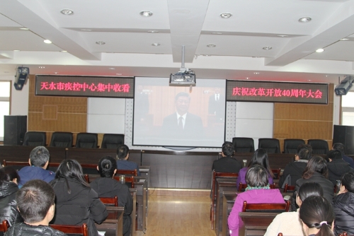 2018年12月18日上午,天水市疾控中心组织干部职工集中收看庆祝改革开放40周年大会。