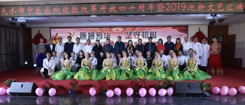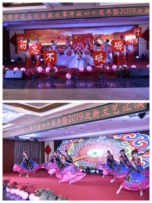 为庆祝改革开放40周年,进一步活跃医院职工精神文化生活,展现全院干部职工积极向上、团结进取的精神风貌,12月28日下午,市中医院在住院部多功能厅举办了以“医路芳华 坚守初心”为主题的2019迎新文艺汇演。市卫计委党委副书记张志伟和市总工会、团市委、市妇联、市直机关工委、市文明办领导,及医院职工、家属、病员等200多人一同观看了文艺汇演。