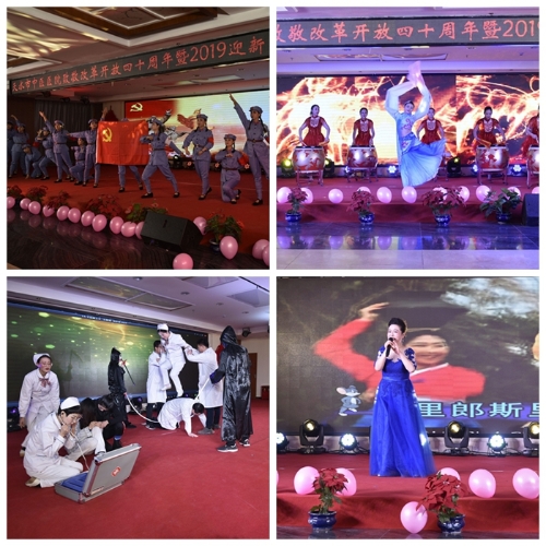 演出在激情昂扬的舞蹈《中华鼓魂》中拉开帷幕。医院职工欢歌笑语,倾力献艺,用歌、舞、朗诵、歌伴舞、乐器合奏等多种表演形式共同致敬改革开放四十周年。清歌雅舞的独唱《难忘的那一天》;神形兼备、美不胜收的舞蹈《不忘初心》、《烟雨秦州》;让我们重温那如火岁月《红色的丰碑》;歌声嘹亮、气氛高昂的合唱《走进新时代》、《祖国不会忘记》;信手拨弹、走马摇铃的二胡《春天的故事》、乐器合奏《沙漠骆驼》;医务战士与病魔战斗感人肺腑的小舞剧《在路上》……一台由医院职工自编自演展现医院精神风貌和致敬改革开放四十周年演出高潮迭起、掌声不断。