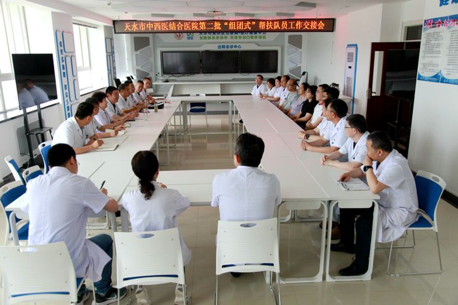 7月3日,天水市第二人民医院召开天津援甘医疗队帮扶队员工作交接会。院领导班子成员、天津市西青区帮扶专家和相关科室负责人参加会议。