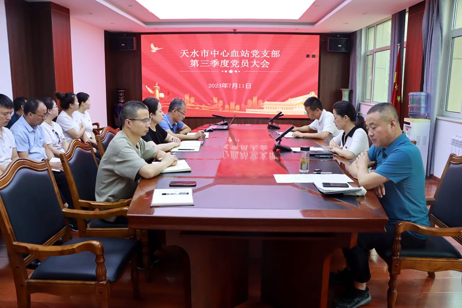 近日,市中心血站党支部召开2023年度第三季度党员大会。总结上半年党建工作,安排部署第三季度党建重点任务。副站长杨双六主持会议,站党支部书记、站长刘雪梅讲话。