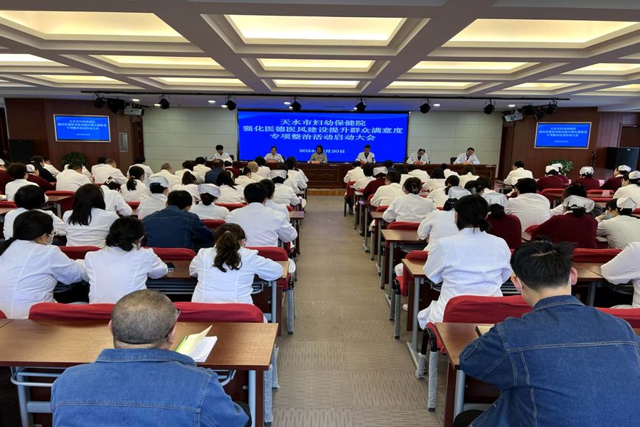 2月20日,天水市妇幼保健院召开强化医德医风建设提升群众满意度专项整治活动启动会议。市卫生健康委副主任、市疾病预防控制局局长范小荣参加会议并讲话。院党委副书记、院长成保胜主持会议。院党政领导班子成员、中层管理干部及职工代表参加会议。