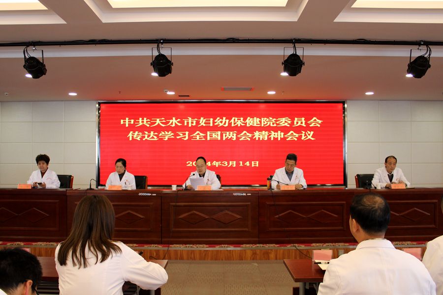 3月14日下午,天水市妇幼保健院党委召开专题会议,传达学习全国两会精神,研究部署贯彻落实有关工作。院党委书记王国强主持会议并讲话。院领导班子成员、各党支部书记和各科室主任、护士长、科秘书参加会议。
