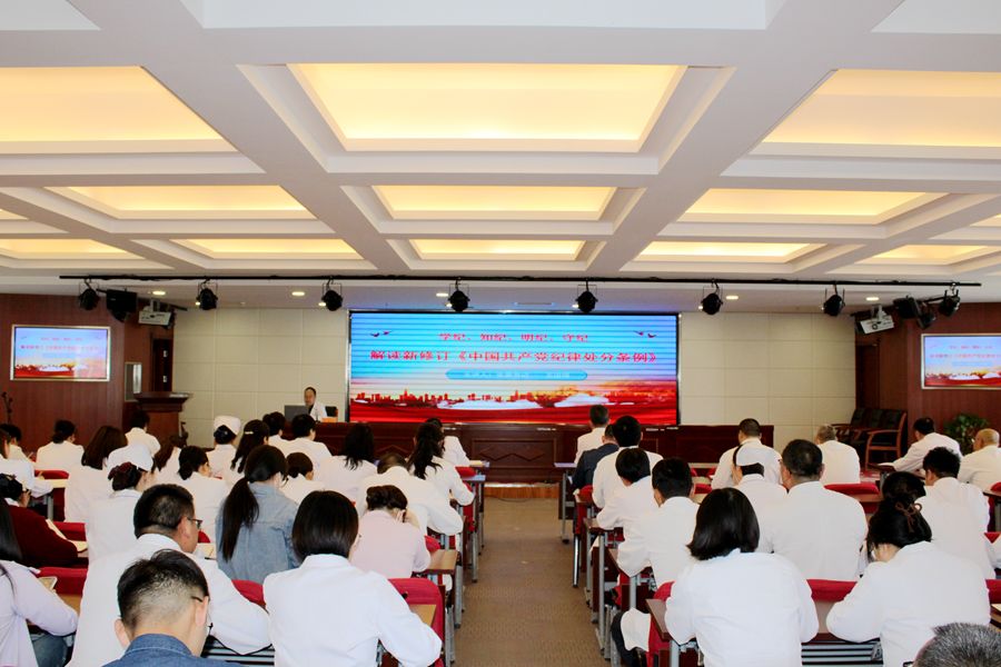 为扎实推进党纪学习教育工作,5月6日,市妇幼保健院党委书记王国强以《学纪、知纪、明纪、守纪,解读新修订〈中国共产党纪律处分条例〉》为题讲授专题党课。院领导班子成员、各党支部书记、科室主任和全体党员参加会议。