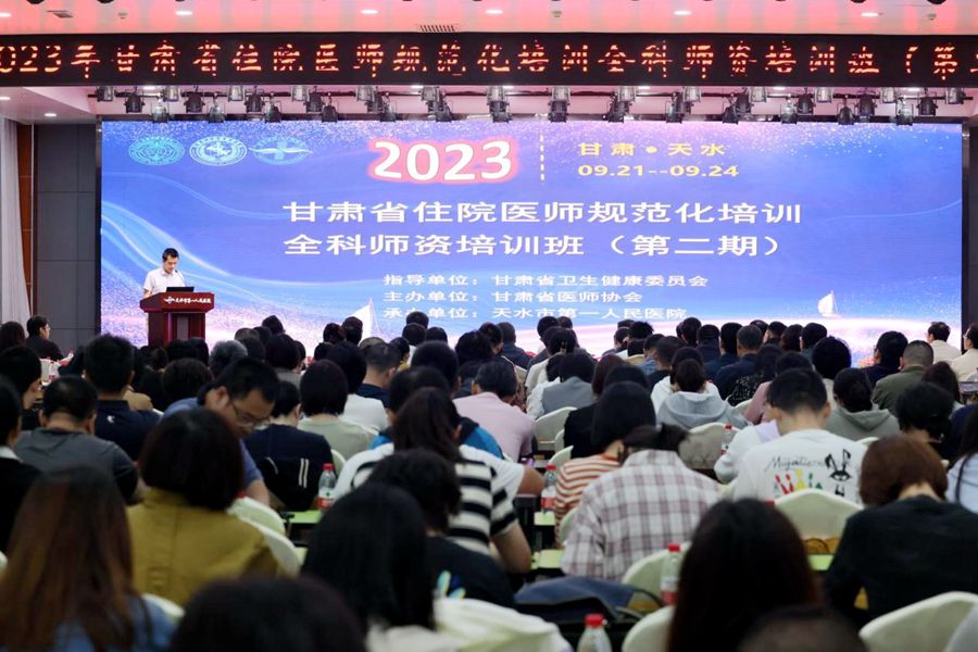 9月21至24日,甘肃省住院医师规范化培训全科师资培训班(第二期)在天水市第一人民医院举行。省卫生健康委二级巡视员益瑞渊,市卫生健康委副主任杨智才,省医师协会秘书长黄晓俊,市第一人民医院党委副书记、院长袁超出席开幕式并讲话。省内各住院医师规范化培训临床基地和基层实践基地240余名带教老师参加培训。