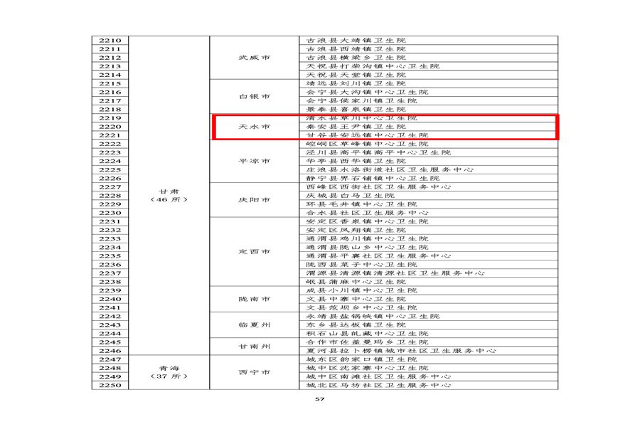 日前,国家卫生健康委办公厅、国家中医药局综合司印发《关于对2023年度“优质服务基层行”活动表现突出服务优质机构予以通报表扬的通知》(国卫办基层函〔2024〕26号),清水县草川中心卫生院、秦安县王尹镇卫生院、甘谷县安远镇中心卫生院3家基层医疗卫生机构达到“优质服务基层行”服务能力推荐标准,并因在活动中表现突出、服务优质,受到国家通报表扬。