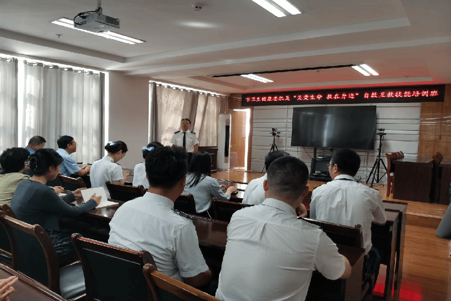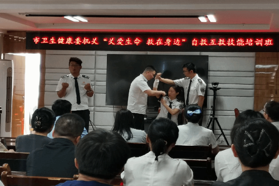 为提高干部职工在紧急情况下的自救互救能力,积极倡导和推动急救知识的普及和宣传,2024年 9月 25日下午,市卫生健康委举办了以“关爱生命 救在身边”为主题的自救互救技能培训班。市卫健委、市医保局干部职工40余人参加培训。