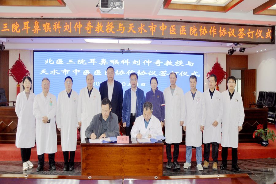 为大力实施“人才强市”战略,有效发挥天水籍在外名医专家优势作用,10月3日,北京大学第三医院耳鼻喉科刘仲奇教授与天水市中医医院耳鼻喉科签订专科联盟协议。市委组织部部务委员裴育栋,市卫健委副主任杨智才出席会议。天水市中医医院党委书记王志刚,院长杨建新,党委委员、副院长马小军及医护代表20余人参加会议。