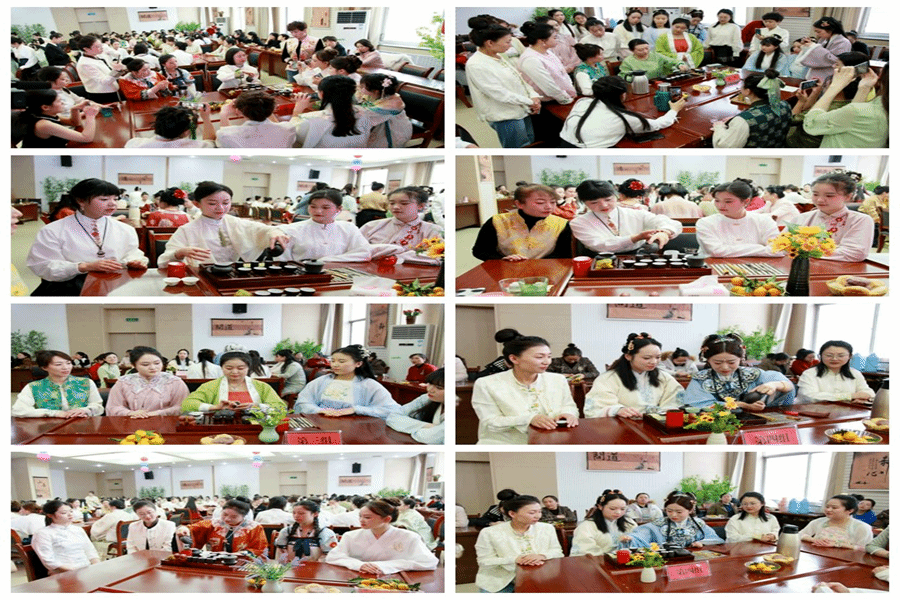 活动邀请国家高级礼仪讲师席春媛作茶艺讲座。席春媛老师以《茶香雅韵怡身心》为题进行茶艺知识讲座,真正把茶道文化搬进了“家”。她一边示范一边热情地为大家讲解茶学知识,对识茶、品茶、茶礼仪、茶与健康、茶与修养等有关茶文化知识进行了细致讲解。听完精彩的讲解,台下身着各种中式华服的各方阵队员都跃跃欲试,跟着老师学习茶道礼仪,将温杯、置茶、注水、倒茶、闻香、品茶等步骤一一用心诠释,体现每一种茶每一道茶的不同韵味。期间穿插的知识问答全场踊跃参与,氛围雅致又热烈,文化自信扑面而来!