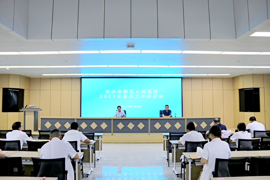 7月5日,天水市第五人民医院召开2023年重点工作推进会。院党总支书记、院长全福才参加会议并讲话。全院各科室负责人参加会议。