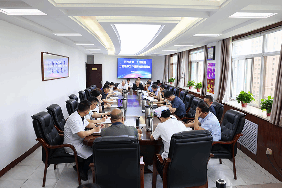 近日上午,市一院召开分管领导工作调研通报会,党委书记丁志杰出席会议并讲话,会议由院长陈江鱼主持,院领导班子成员及相关科室负责人30余人参加会议。