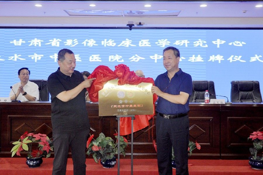 雷军强、杨建新共同为甘肃省放射影像医学临床医学研究中心天水市中医医院分中心揭牌;苏建伟、马小军和秦安县中医院党委书记杨尚荣,武山县中医院党委副书记、院长周子权共同为天水市中医医院放射影像专科联盟成员单位揭牌。