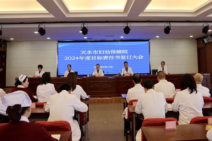 为全面做好2024年医院各项工作,明确责任目标,强化责任担当,助力医院高质量发展。3月14日下午,天水市妇幼保健院召开2024年度目标管理责任书签订会议。院党委书记王国强主持会议。院党政领导班子成员、各党支部书记和全体中层干部参加会议。