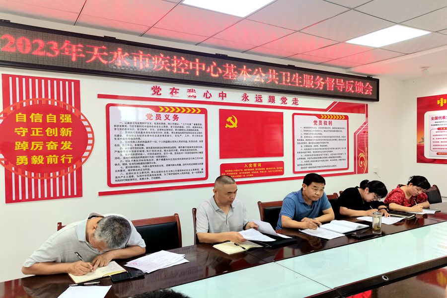 督导组先后深入7个县区疾控中心和14个社区卫生服务中心(乡镇卫生院),通过查阅资料、系统核对、电话随访服务对象、座谈反馈等方式,重点对预防接种、传染病及突发公共卫生事件报告和处理、高血压、2型糖尿病、严重精神障碍、肺结核患者管理等工作落实情况进行了督导评价。并现场对各单位督导中发现的问题和不足进行了反馈,对下一步工作提出了指导意见和要求。