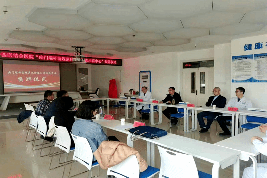 唐志锋与姬瑞共同为天水市中西医结合医院“幽门螺杆菌规范化诊治门诊市级示范中心”揭牌。