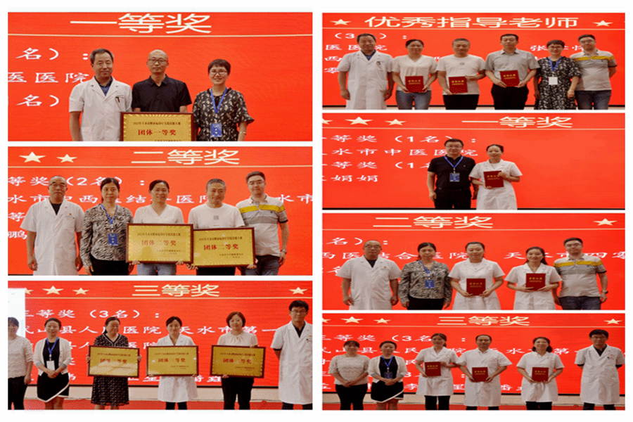 经过激烈角逐,参赛选手们凭借扎实的基本功、过硬的操作技能,取得了优异的成绩,充分展示了全市医务人员的良好风采。天水市中医医院、天水市中西医结合医院、天水市四〇七医院等6个单位分别荣获团体一、二、三等奖;宋娟娟、樊鹏翔、王捷、孟玮、李卫星、潘垚垚分别获得个人比赛一、二、三等奖。