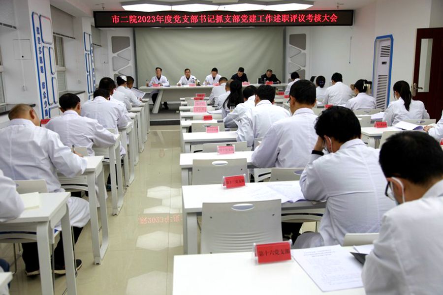1月31日,天水市第二人民医院召开2023年度党支部书记抓基层党建工作述职评议考核会议。区委组织部副部长李雄颢出席指导会议。院领导班子成员,各党支部书记及党建办、党政办、组织人事科负责人,医院“两代表一委员”共40余人参加会议。