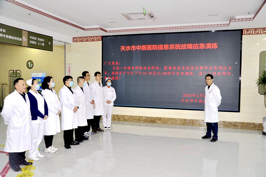 为进一步完善医院网络安全应急处置机制,强化网络安全意识,2月5日下午,天水市中医医院组织开展信息系统网络故障应急演练。院党委委员、副院长苏建伟,信息科、医务科、护理部、门诊部、财务科、药剂科、保卫科及门诊各相关科室人员参加演练。