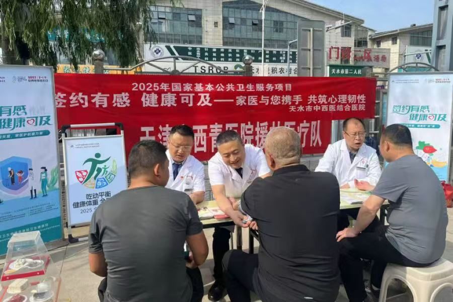 为持续加强家庭医生签约服务宣传推广,推动家庭医生签约服务工作深入开展,引导更多居民群众充分利用签约服务,提升他们对签约服务的知晓率和感受度,近日,天水市第二人民医院联合天津市西青医院援甘医疗队紧扣“签约有感,健康可及”和“科学控体重,健康有‘医’靠;一老一小同关爱,家医护航暖万家;家医与您携手,共筑心理韧性”重点宣传主题,在附近社区卫生服务站开展“世界家庭医生日”宣传系列活动,以实际行动为辖区居民群众送去健康和签约服务。