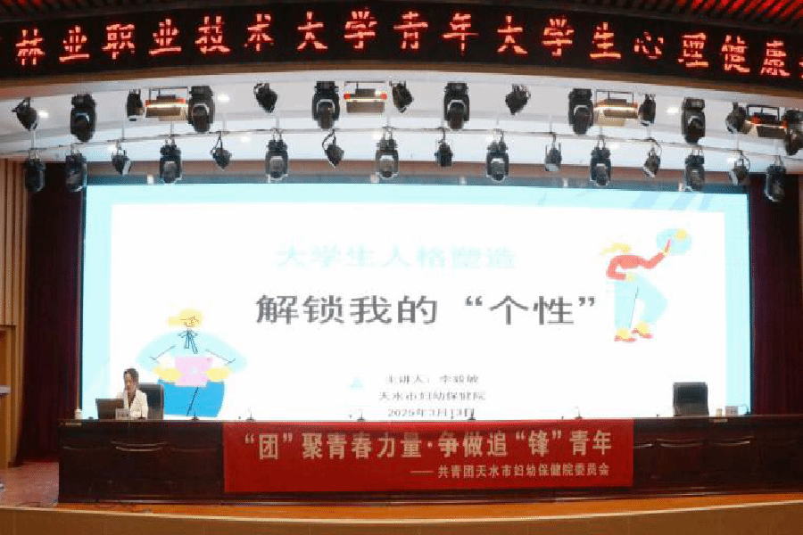 为弘扬“奉献、友爱、互助、进步”的志愿服务精神,结合天水市健康科普“六进”活动,提升大学生心理健康素养,3月13日晚,天水市妇幼保健院儿童保健科心理治疗师、心理咨询师、心理健康教育教师李毅敏走进甘肃省林业职业技术大学,利用晚自习时间为900名大一新生带来了一场别开生面的心理健康讲座。此次讲座以“大学生人格塑造——解锁‘我’的个性”为主题,现场座无虚席,气氛热烈。