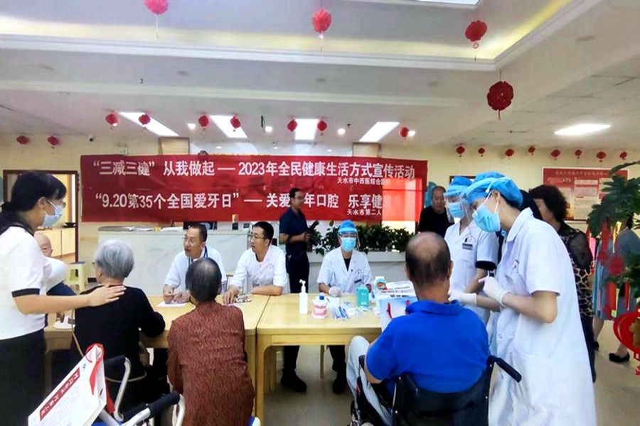 9月13日,义诊宣教团队赴麦积区天颐园康养居,看望慰问养老院老人,为50余位在院休养老人讲解口腔健康日常护理知识、开展口腔检查、根面涂氟等义诊活动,并为在院老人送上精心准备的护牙包,让老人们真切感受二院人的温暖与关怀,活动赢得了老人们的一致赞誉。