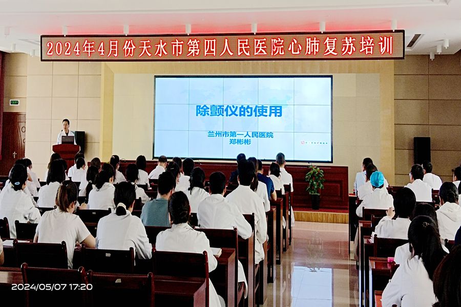 培训邀请了兰州市第一人民医院支援我院心血管内科郑彬彬主任讲述了电除颤仪的使用技术。以及急诊学科肖俊主治医师讲解了心肺复苏的基本原理、操作流程和注意事项。此外,培训还特别邀请急诊科主任刘峰副主任医师和护士安爱梅现场操作模拟演练,让参加培训人员在紧张的环境中锻炼应急反应能力,提升实际操作水平。通过理论讲解与实际操作相结合的方式,使参加培训人员更好地掌握心肺复苏的操作技巧。