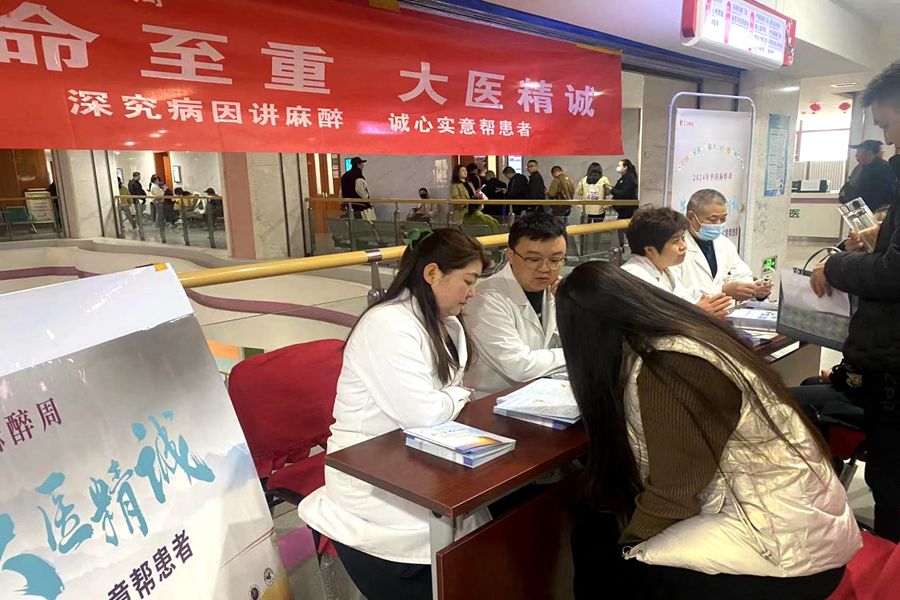 2024年3月25日至31日是第8个“中国麻醉周”,今年的主题为“生命至重,大医精诚—深究病因讲麻醉,诚心实意帮患者”。为提升群众对麻醉学的知晓度,3月29日上午,天水市妇幼保健院开展中国麻醉周义诊宣传活动。