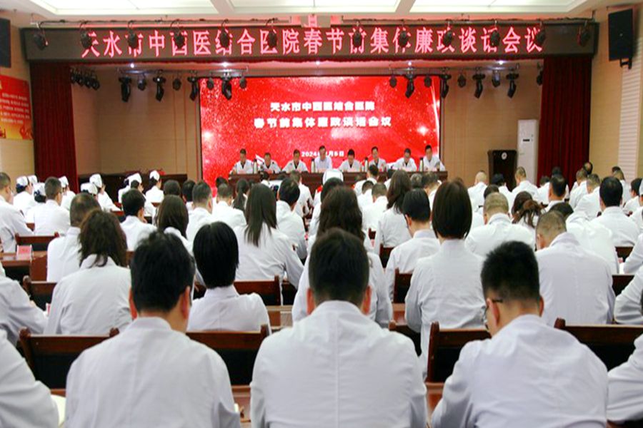 2月5日,天水市中西医结合医院(市二院)召开2024年春节前集体廉政谈话会议。院长唐志锋主持会议并讲话。院领导班子成员、各党支部书记和各科室主任、护士长、业务骨干代表共180余人参加会议。